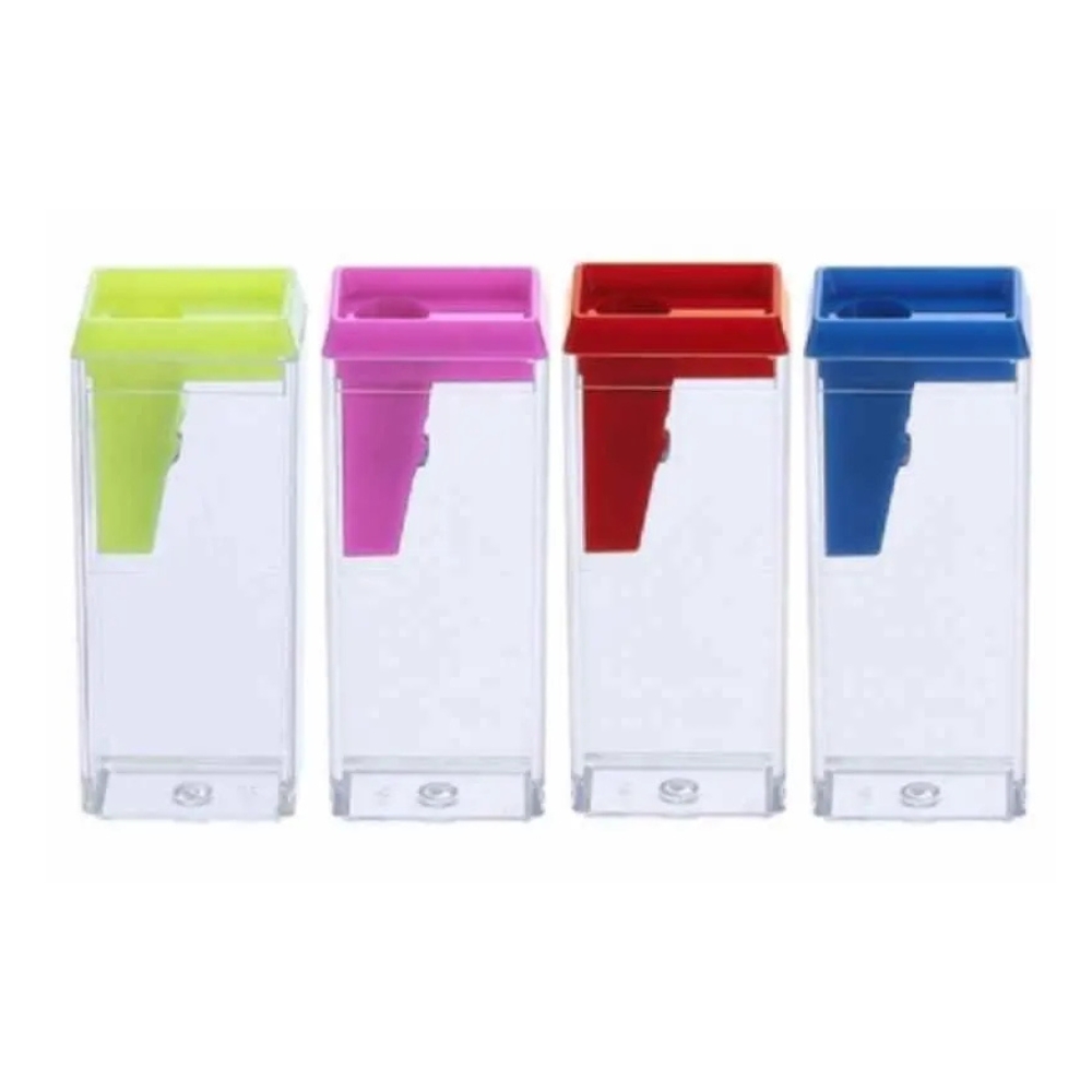 Apontador prático com depósito para aparas, compacto e fácil de usar.