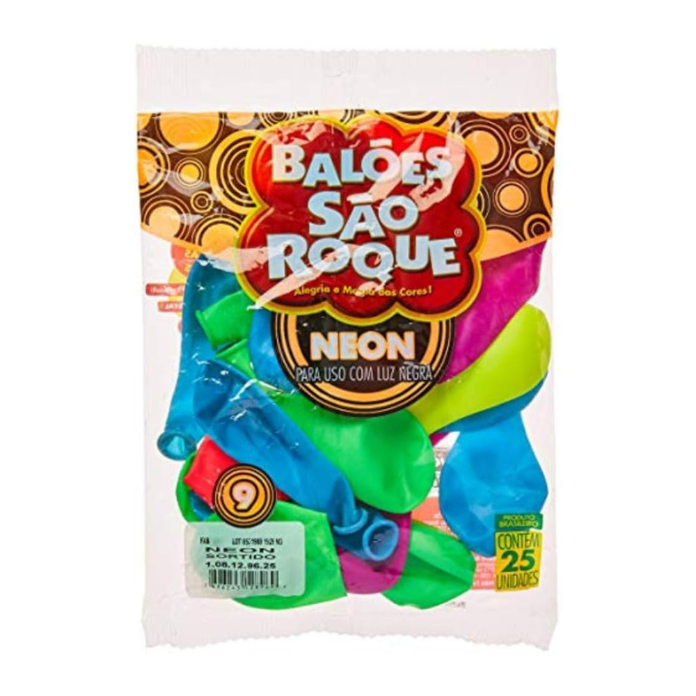 Pacote de balões lisos neon em cores sortidas, tamanho 9 polegadas. Ideal para decorações diversificadas e animadas.