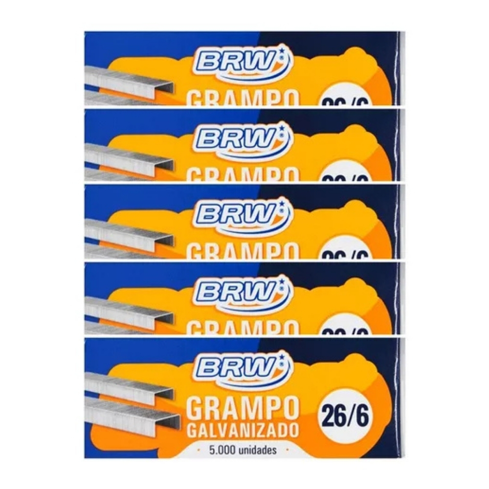 Caixa contendo grampos galvanizados resistentes, compatíveis com grampeadores padrão. Fabricados em aço de alta qualidade, garantem fixação firme e durabilidade em papelarias e escritórios.