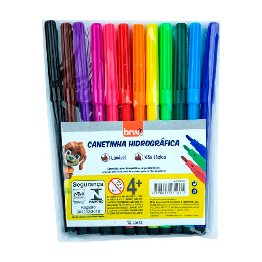 Conjunto de canetas hidrográficas coloridas, ideais para desenhos, anotações e trabalhos escolares. Tintas vibrantes e ponta resistente para traços precisos.