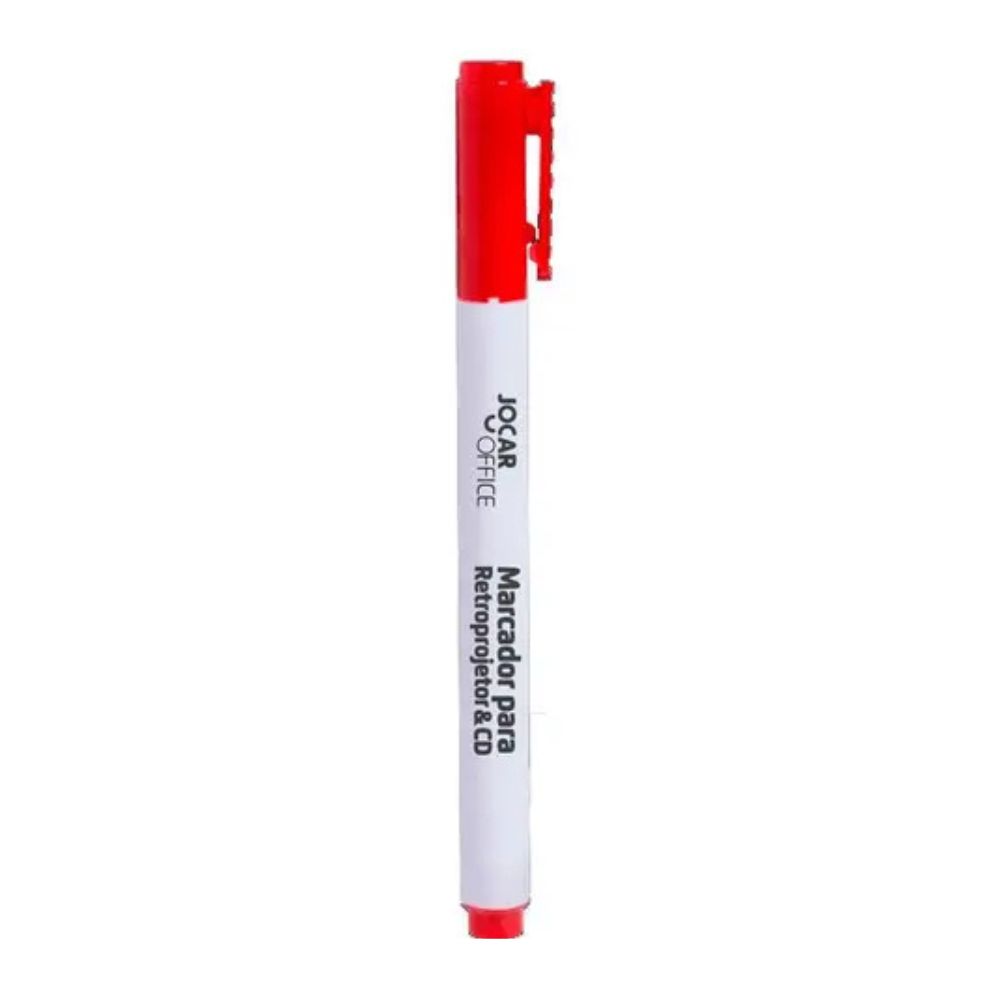 Caneta para retroprojetor na cor vermelha, resistente à água e de alta durabilidade.