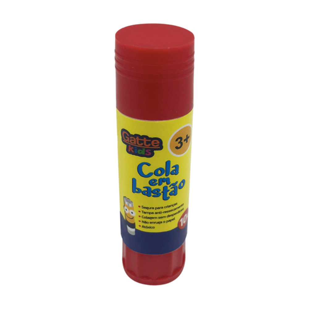Cola em bastão de 10g, prática e limpa, perfeita para uso escolar, artesanal e escritórios.