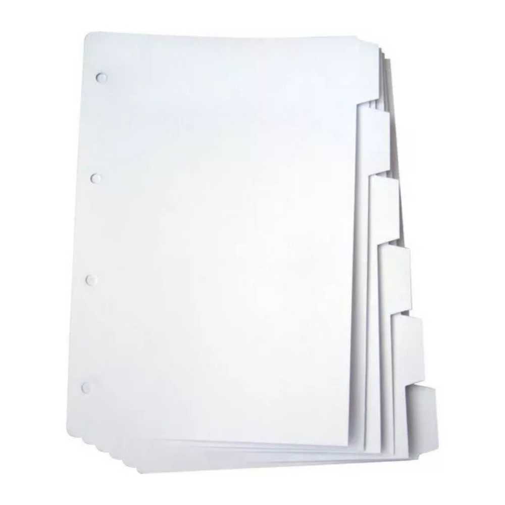 Jogo de divisórias no formato A4, confeccionado em plástico ou papel reforçado. Auxilia na separação e identificação de documentos dentro do fichário, proporcionando organização e agilidade na consulta.
