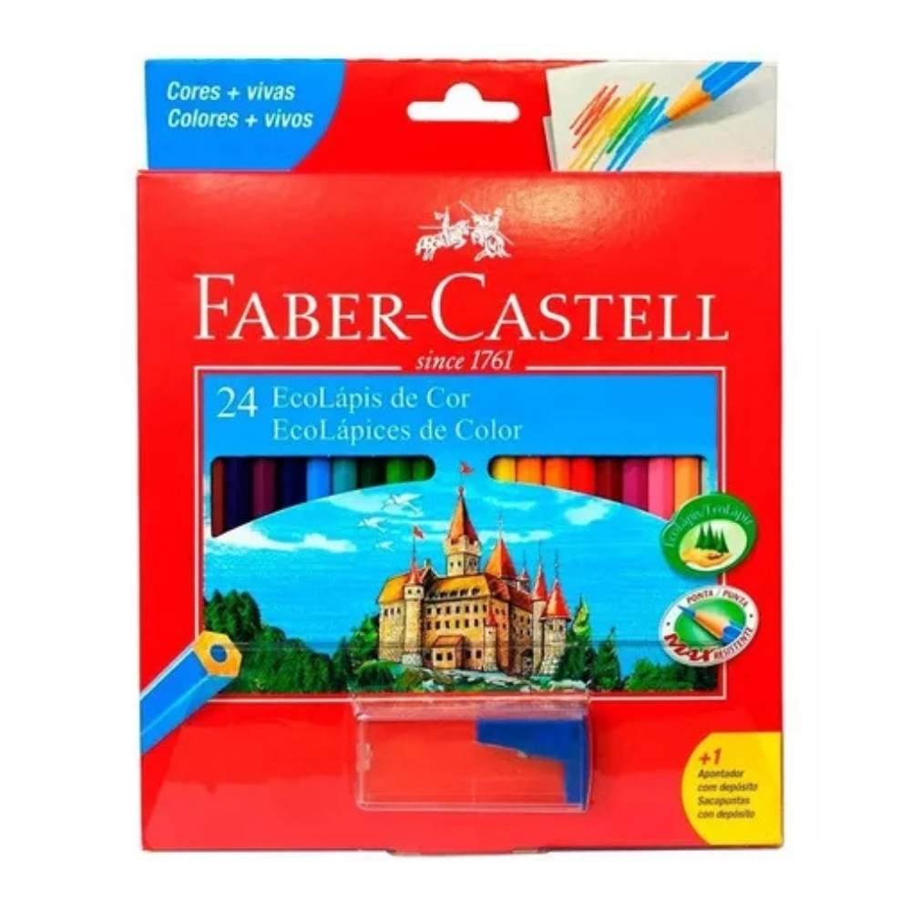 Conjunto de 24 ecolápis de cor sextavados, acompanhados de um apontador. Produzidos com madeira sustentável, possuem pigmentação intensa e traço macio, ideais para desenhos e atividades escolares.