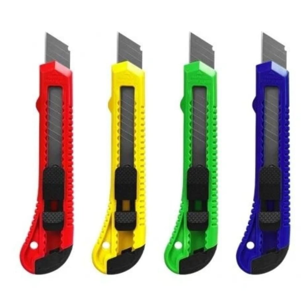 É uma ferramenta prática e segura para cortar materiais diversos como papel, papelão, plásticos e outros materiais de escritório ou artesanato. Com cabo em plástico resistente, oferece um bom controle durante o uso, e sua lâmina de 18mm permite cortes precisos e rápidos. Ideal para ambientes profissionais ou para atividades escolares e domésticas.