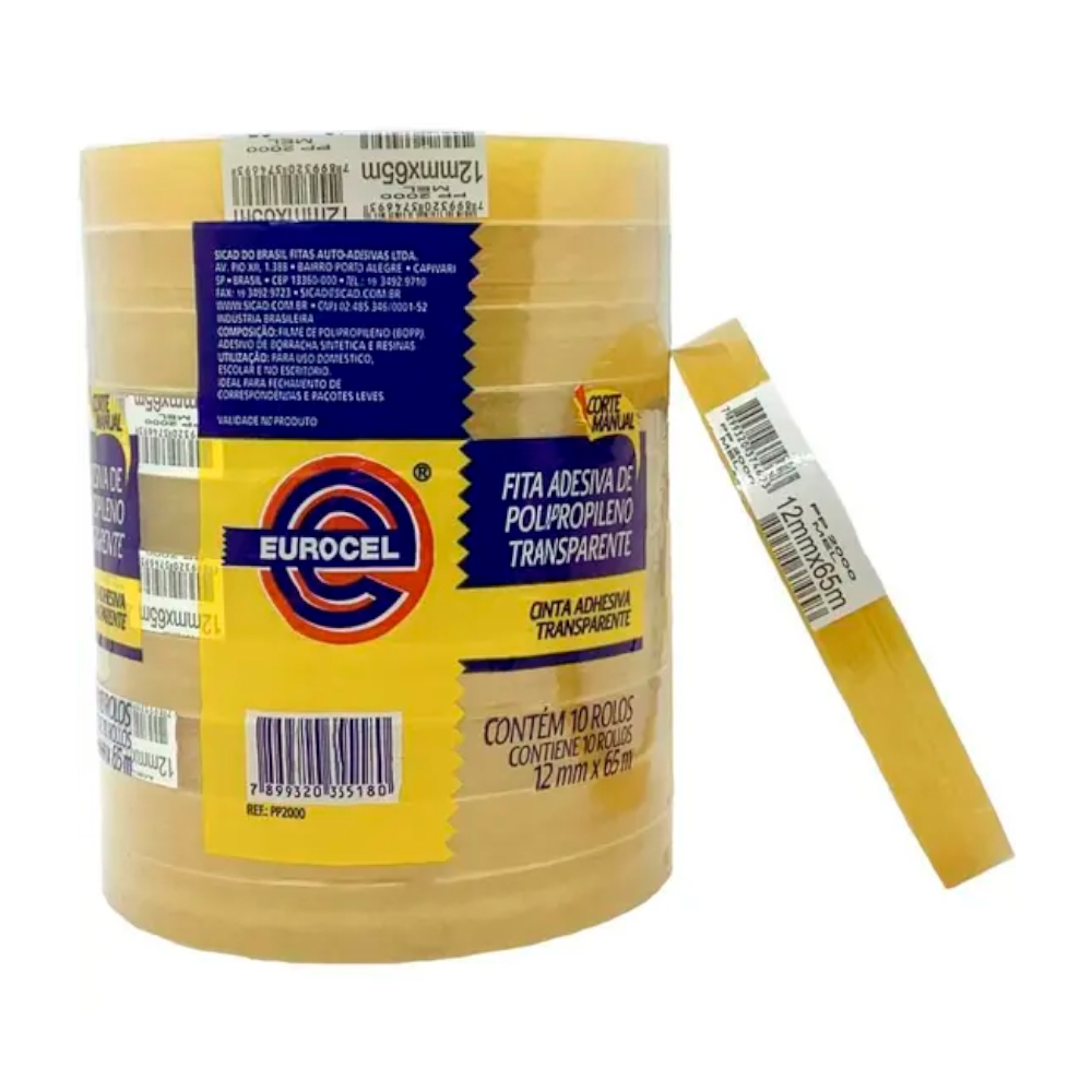 Fita adesiva transparente, resistente e de alta aderência. Indicada para uso escolar, escritórios e embalagens leves.