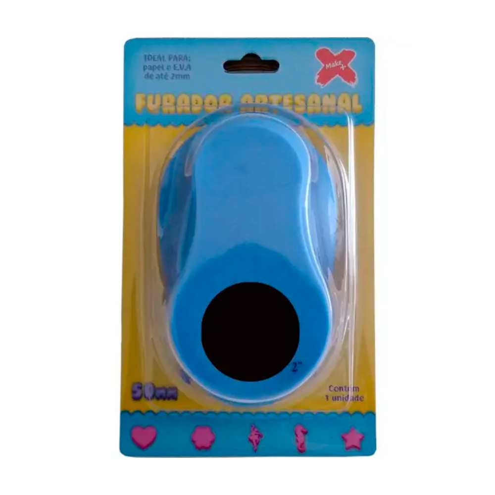 Furador de EVA que perfura círculos de 50mm de diâmetro, ideal para artesanato, scrapbook e personalização de trabalhos manuais.