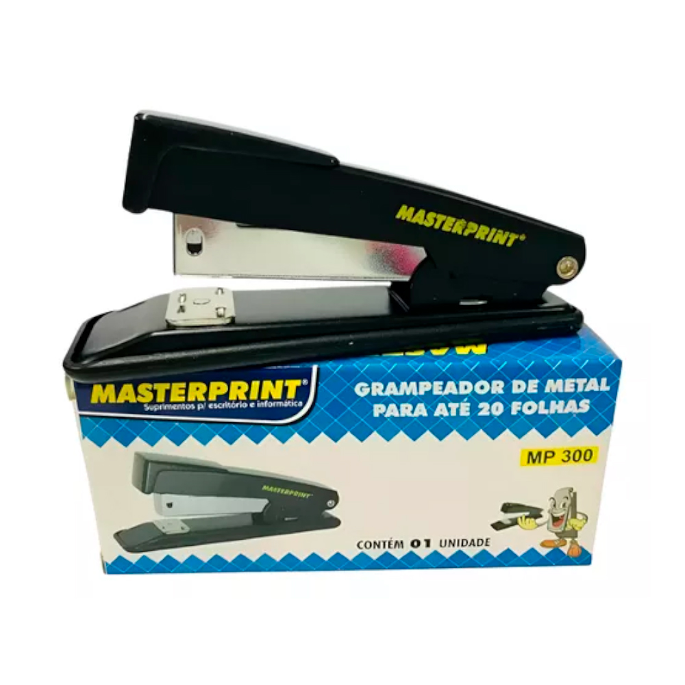 Grampeador resistente para uso diário em escritório e papelaria.