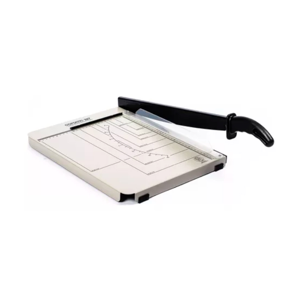 Ferramenta precisa para cortes retos em papel e cartolina, essencial para escritórios e gráficas.