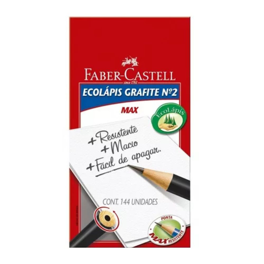 Lápis grafite ecológico, com corpo redondo e madeira reflorestada, garantindo escrita macia e confortável.