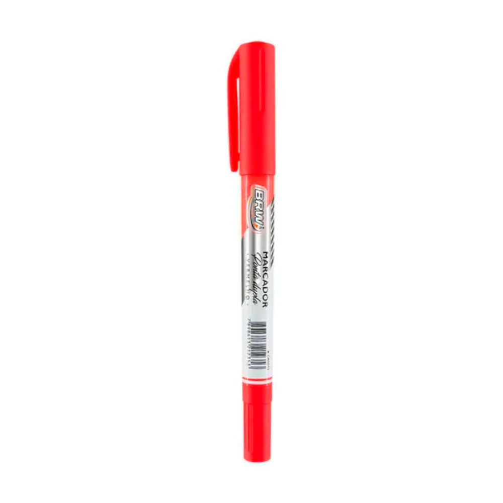 Marcador permanente com ponta dupla, ideal para retroprojetores, transparências e superfícies lisas. Cor vermelha intensa.