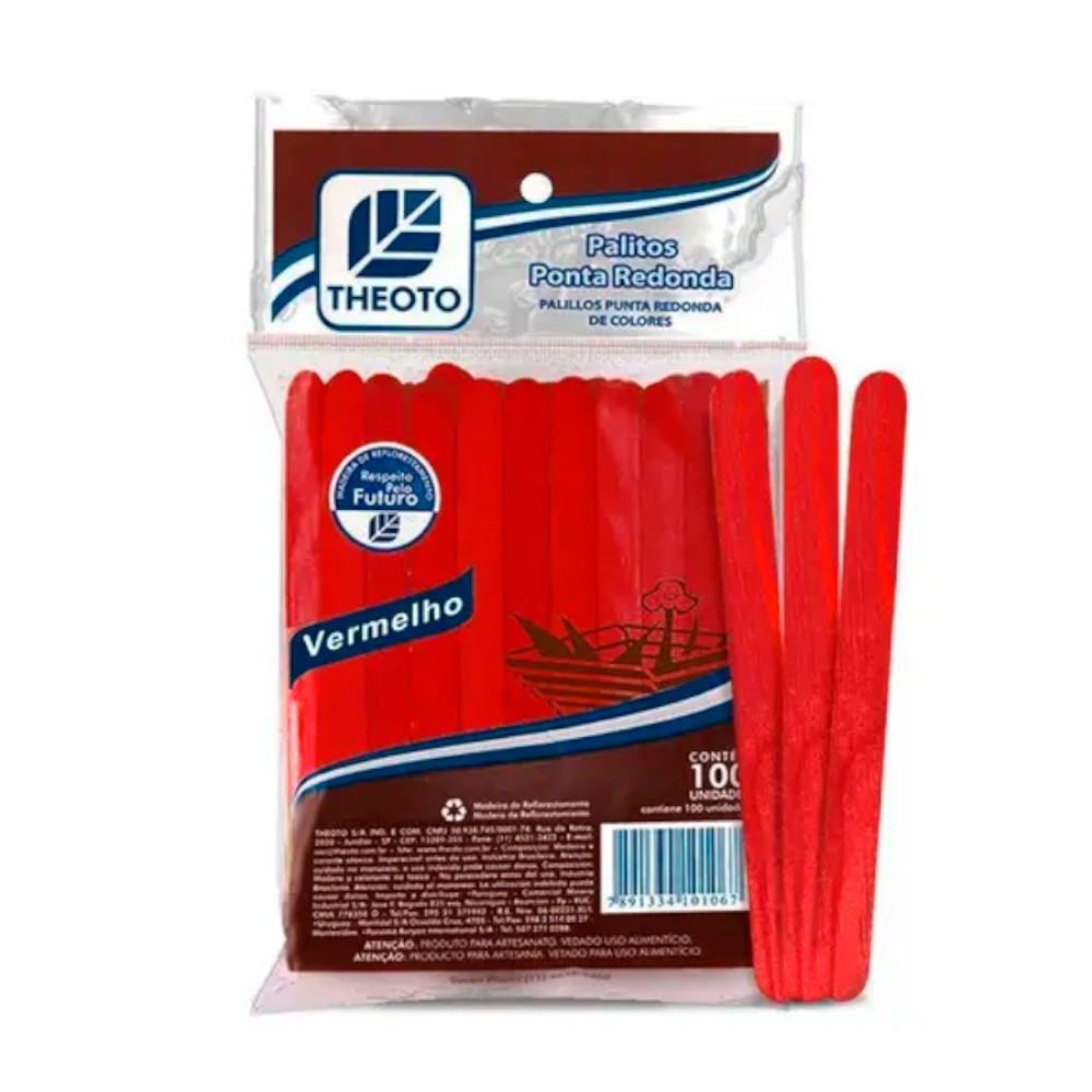 Conjunto com 100 palitos de picolé na cor vermelha, ideais para trabalhos criativos, decoração e confeitaria.