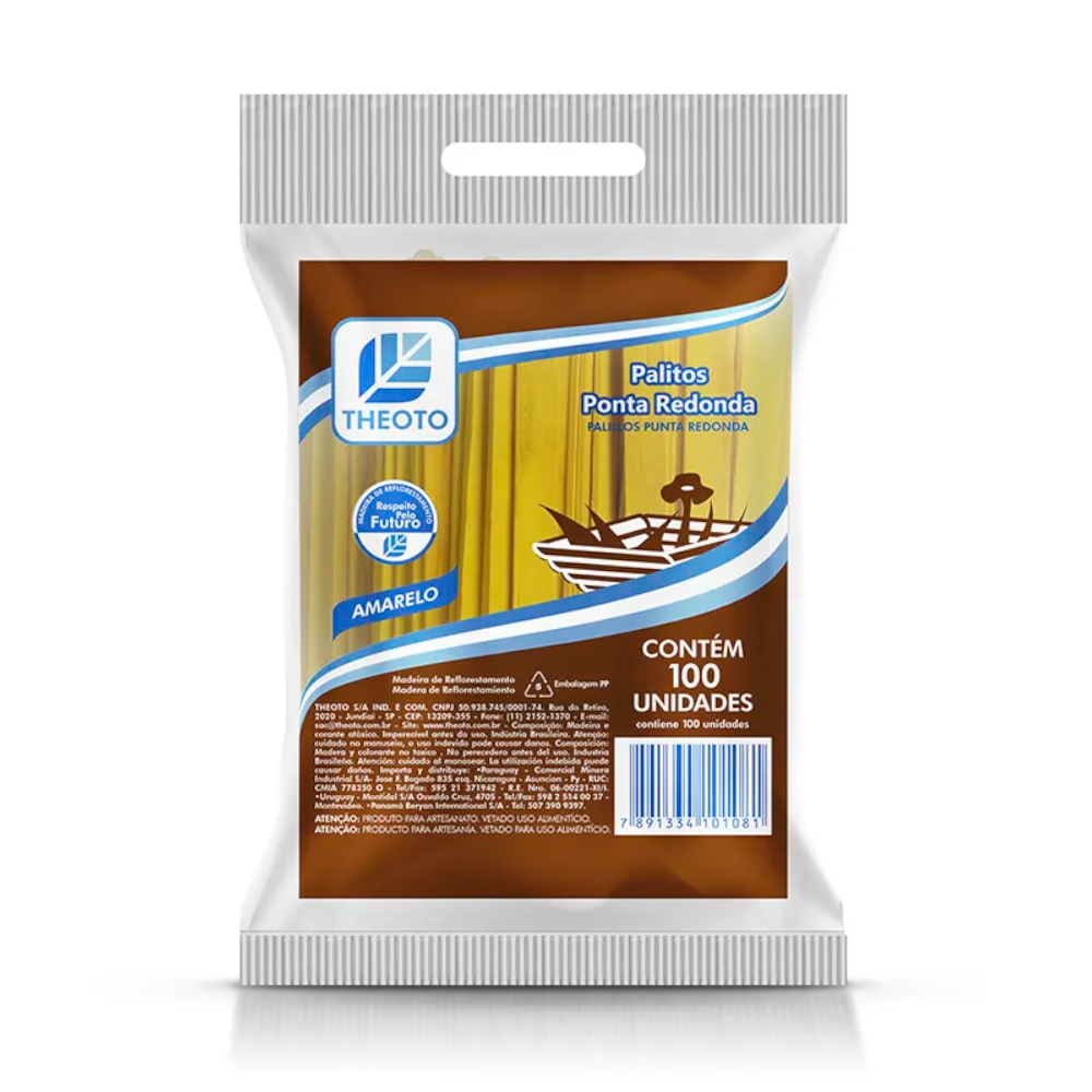 Pacote com 100 palitos de picolé na cor amarela, ideais para artesanato, decoração e uso culinário.