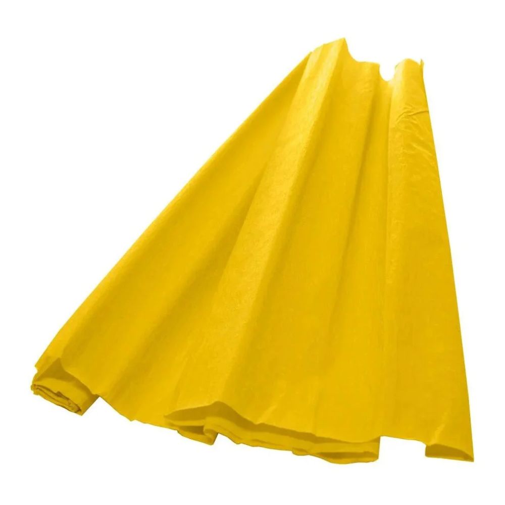 Papel crepom de alta qualidade, flexível e resistente, indicado para decoração, embrulhos e trabalhos manuais. A cor amarela vibrante é perfeita para criar artesanatos criativos e temáticos em festas ou eventos.
