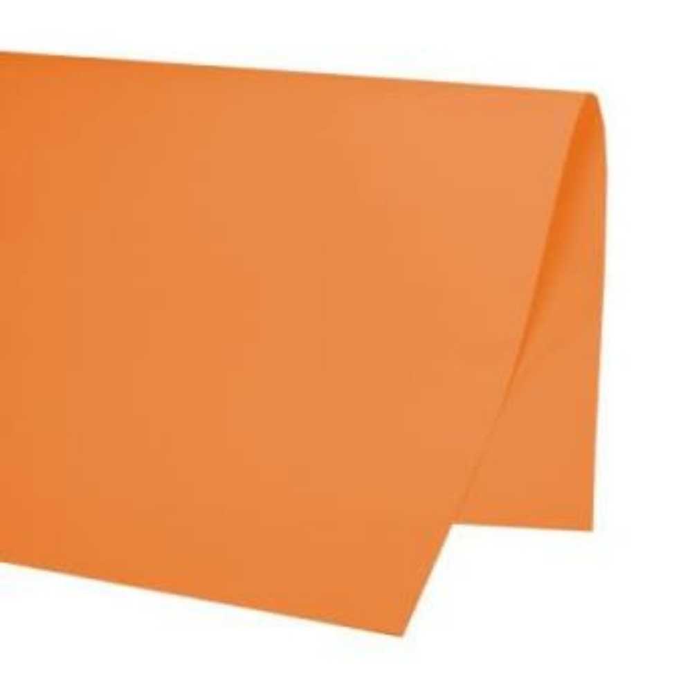 Folha de papel fantasia na cor laranja vibrante, ideal para embalar presentes, criar decorações temáticas ou desenvolver projetos artesanais. Material resistente e com acabamento visual atraente.