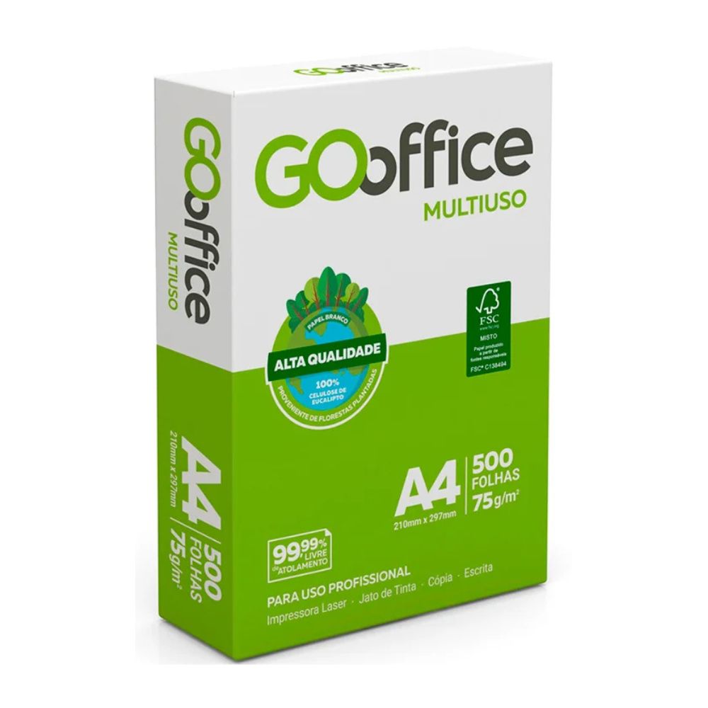 Pacote de 500 folhas de papel A4, 75g, para impressão, escrita e uso geral em escritórios e escolas.