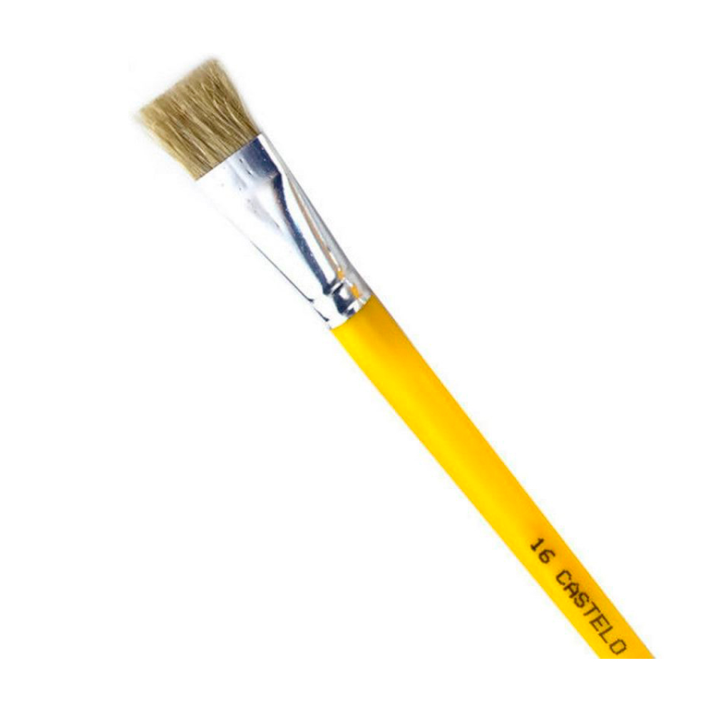 Pincel de cerdas firmes e formato chato, indicado para pintura em diversas superfícies.