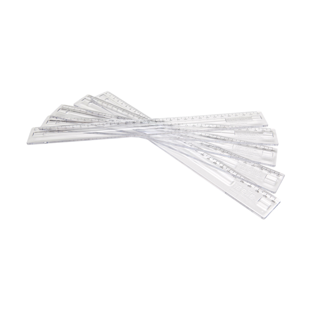 Régua de 30 cm na cor branca, ideal para medições precisas em trabalhos escolares, escritório e uso profissional.