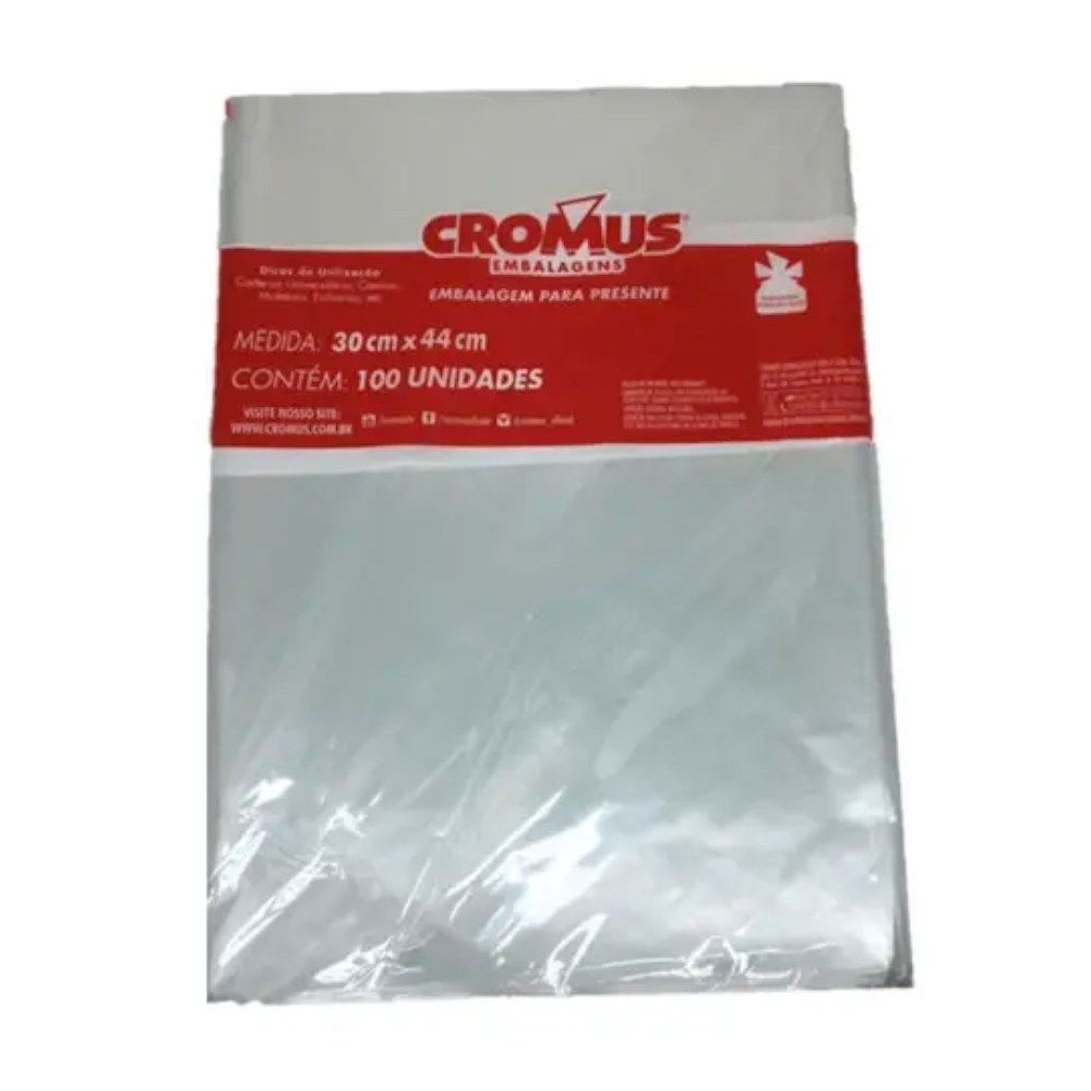 Saco plástico transparente, resistente e versátil, ideal para armazenamento e organização de produtos diversos.