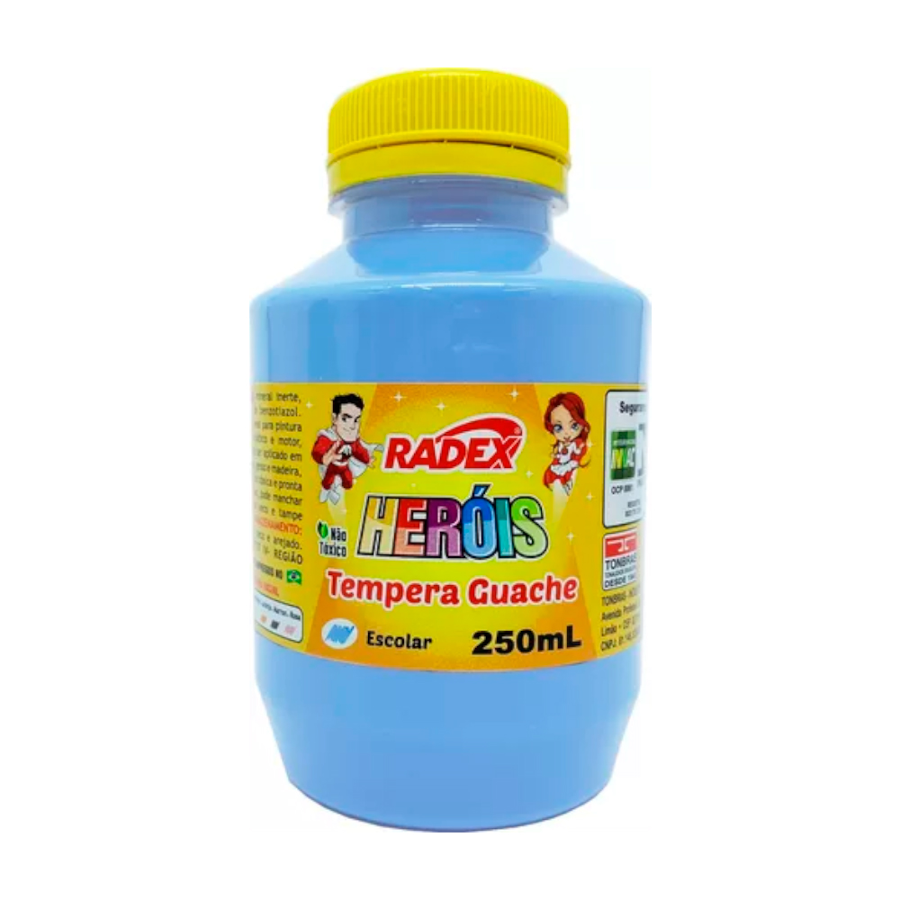 Tinta guache de alta cobertura e fácil aplicação, perfeita para pinturas artísticas e escolares. Cor azul claro vibrante.